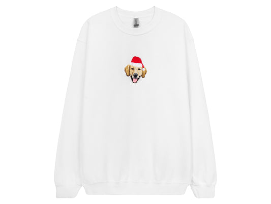 Custom Pet Embroidered Sweatshirt - Pet Portrait with Christmas Hat